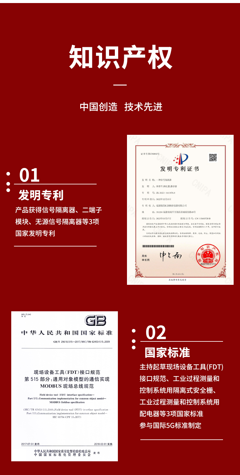 虹潤公司是專業(yè)生產(chǎn)隔離器的國家專精特新“小巨人”企業(yè)。生產(chǎn)的信號隔離器,具有采用磁隔離技術(shù),直流電壓/電流輸入,響應(yīng)時間快,抗干擾能力強,性價比高等特點。該產(chǎn)品不僅通過德國萊茵 CE 認(rèn)證與 SIL 功能安全認(rèn)證,還獲得信號隔離器、二端子模塊、無源信號隔離器等3項國家發(fā)明專利,主持起草現(xiàn)場設(shè)備工具(FDT)接口規(guī)范、工業(yè)過程測量和控制系統(tǒng)用隔離式安全柵、工業(yè)過程測量和控制系統(tǒng)用配電器等3項國家標(biāo)準(zhǔn),參與國際5G標(biāo)準(zhǔn)制定。產(chǎn)品廣泛應(yīng)用于石油、電力、化工,冶金、制藥、污水處理、窯爐控制等各種需要電隔離的工業(yè)現(xiàn)場。