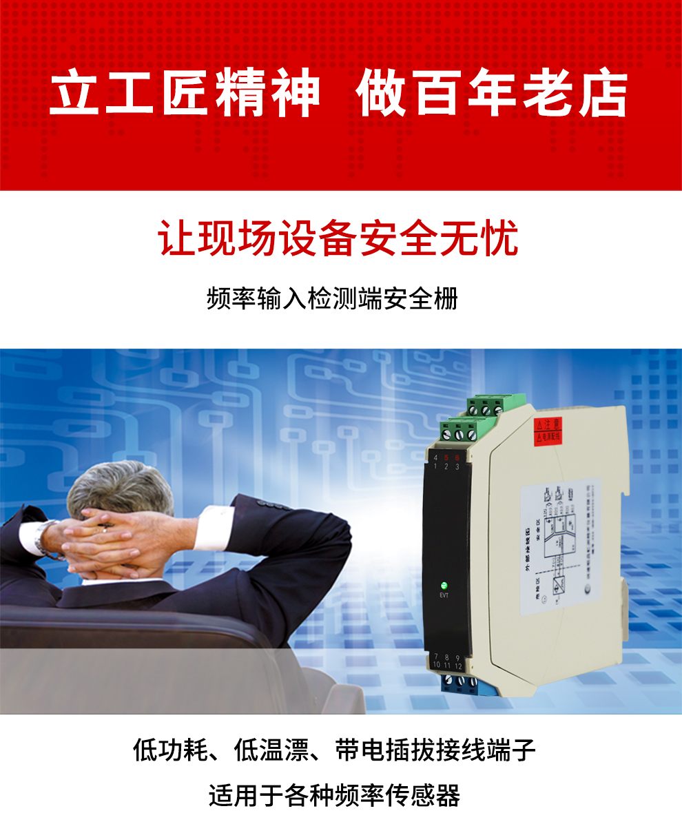 OHR-A34系列頻率輸入檢測端隔離柵可給現(xiàn)場危險區(qū)儀表提供12V或24V的隔離電源,危險區(qū)儀表產(chǎn)生的頻率信號通過安全柵隔離傳輸?shù)桨踩珎?cè)輸出。輸入具有較高的抗干擾性能。該產(chǎn)品需獨立供電,輸入/輸出/電源三隔離。本產(chǎn)品可用在頻率信號源等設(shè)備。