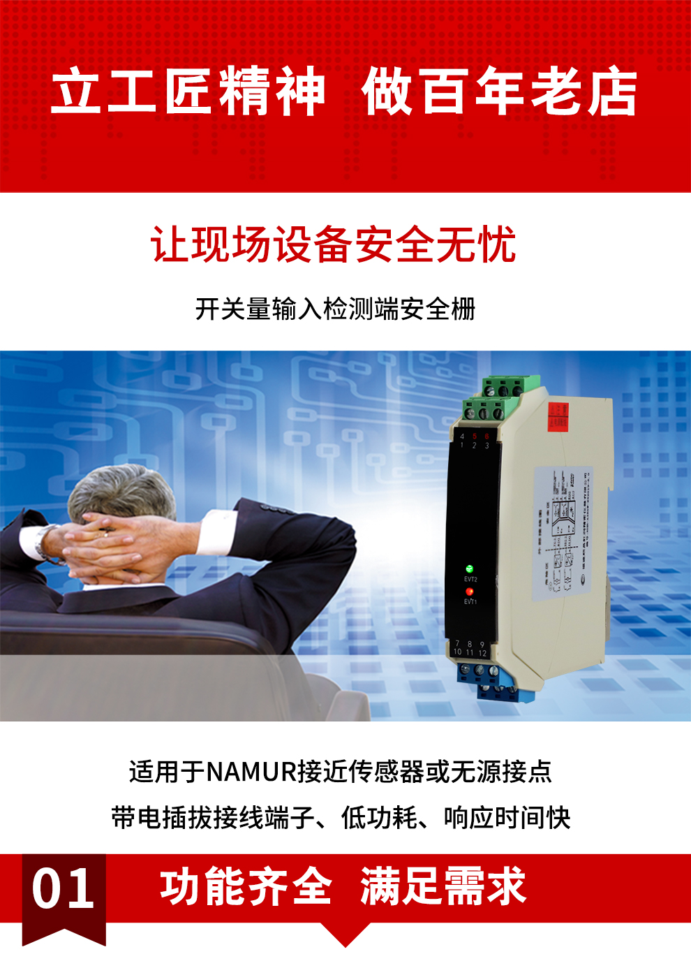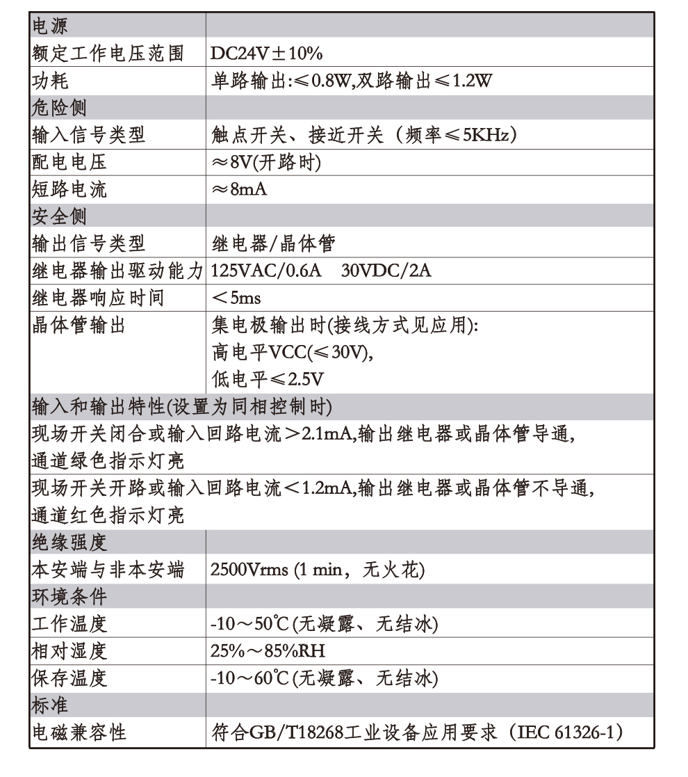 OHR-A35系列開關(guān)量輸入檢測端隔離柵接受來自危險區(qū)的開關(guān)或接近開關(guān)輸入,通過安全柵隔離輸出到安全側(cè)的繼電器或晶體管輸出,它具有輸入狀態(tài)檢測指示,可進(jìn)行正反向控制,該產(chǎn)品需獨立供電,輸入/輸出/電源三隔離。