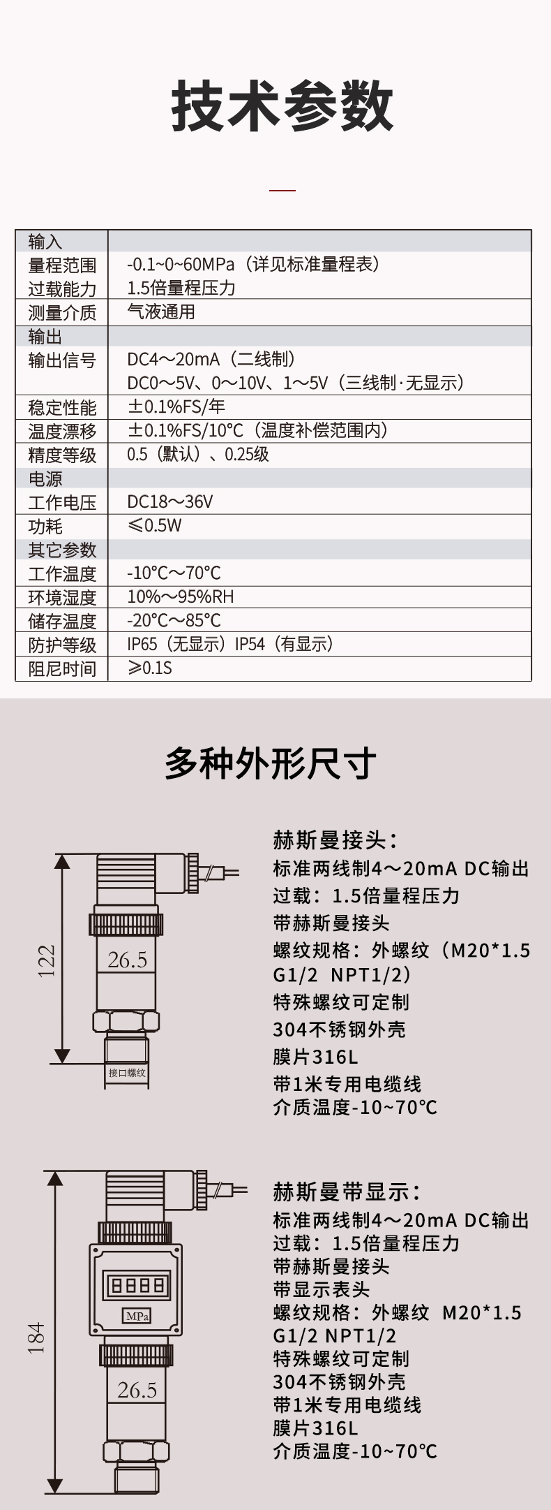 虹潤公司是專業(yè)生產(chǎn)壓力變送器的國家專精特新“小巨人”企業(yè),生產(chǎn)的小巧型壓力變送器,具有采用進(jìn)口芯體,量程范圍寬,抗沖擊抗震動,多種螺紋接口,性能穩(wěn)定等特點。產(chǎn)品獲得一種數(shù)字顯示低功耗壓力表、一種信號發(fā)生器裝置等2項國家發(fā)明專利,主持起草工業(yè)過程控制系統(tǒng)用模擬輸入兩位或多位輸出儀表、工業(yè)過程測量和控制系統(tǒng)用壓力/差壓變送器等2項國家標(biāo)準(zhǔn),參與國際5G標(biāo)準(zhǔn)制定,取得數(shù)顯壓力表等2項相關(guān)軟件著作權(quán)。產(chǎn)品廣泛應(yīng)用于化工、食品、制藥、電力、設(shè)備配套、供暖、水處理、樓宇等行業(yè),需精準(zhǔn)測量流體壓力的現(xiàn)場。