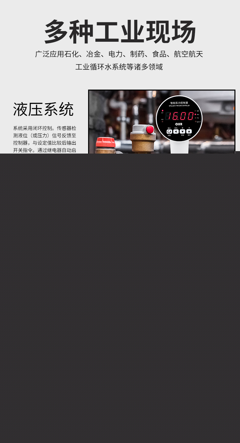 虹潤公司是專業(yè)生產(chǎn)數(shù)顯壓力表的國家專精特新“小巨人”企業(yè)。生產(chǎn)的智能壓力控制器,具有氣體液體通用,自動溫度補(bǔ)償,過載控壓保護(hù),響應(yīng)速度快,IP65防護(hù)等級等特點(diǎn)。產(chǎn)品獲得一種數(shù)字顯示低功耗壓力表以及一種信號發(fā)生裝置等2項(xiàng)國家發(fā)明專利,主持起草物工業(yè)過程測量和控制系統(tǒng)用壓力/差壓變送器以及工業(yè)過程控制系統(tǒng)用模擬輸入兩位或多位輸出儀表等2項(xiàng)國家標(biāo)準(zhǔn),參與國際5G標(biāo)準(zhǔn)制定,取得壓力控制器等2項(xiàng)相關(guān)軟件著作權(quán)。產(chǎn)品廣泛石化、冶金、電力、制藥、食品、航空航天、工業(yè)循環(huán)水系統(tǒng)等諸多領(lǐng)域