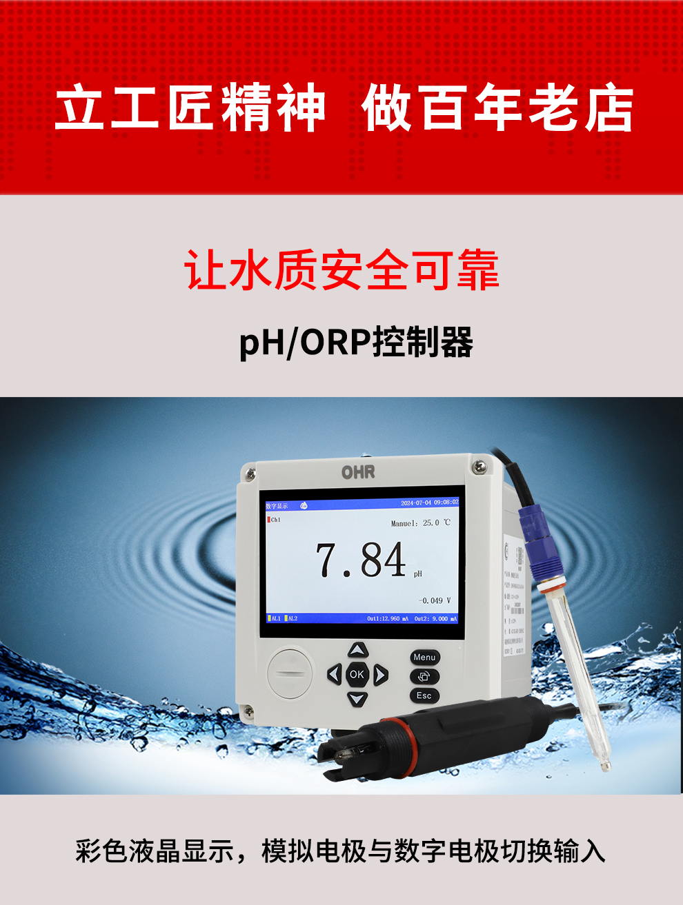 OHR-PH70系列pH/ORP控制器是一款在線化學分析控制器,主要用于測量水溶液的pH值 和ORP值。用戶可以通過配接相應(yīng)的pH電極或ORP電極來進行測量。該控制器能夠?qū)崟r監(jiān) 測溶液的酸堿度情況,為相關(guān)工業(yè)過程提供準確的化學分析數(shù)據(jù)。