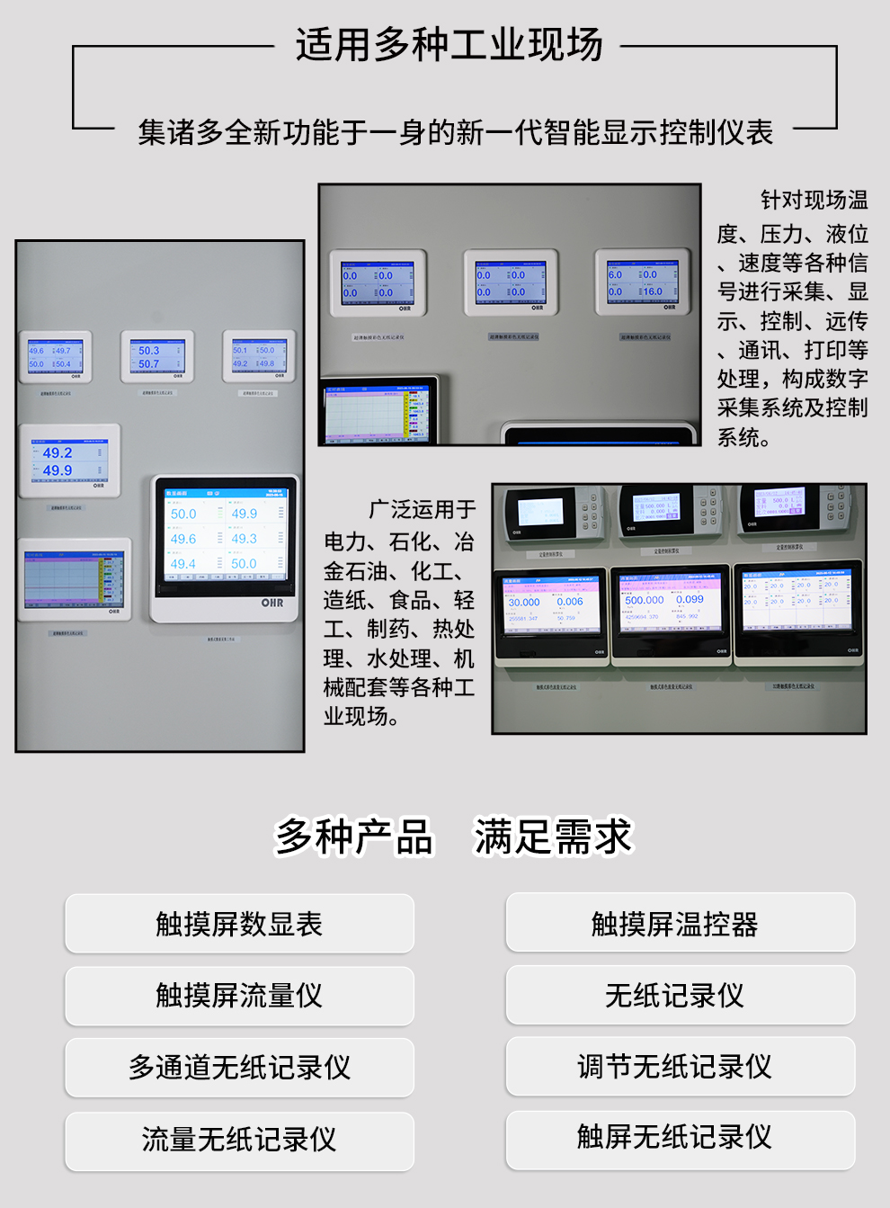 OHR系列觸摸屏溫控器采用真正的人工智能算式,儀表啟動自整定功能,可以根據(jù)被控對象的特性,自動尋找最優(yōu)參數(shù)以達到很好的控制效果,無需人工整定參數(shù)??販鼐然具_±0.1℃,無超調(diào)、欠調(diào),達國際先進水平。4路萬能信號輸入,可帶2路PID 控制,RS485通訊接口,以太網(wǎng)接口。