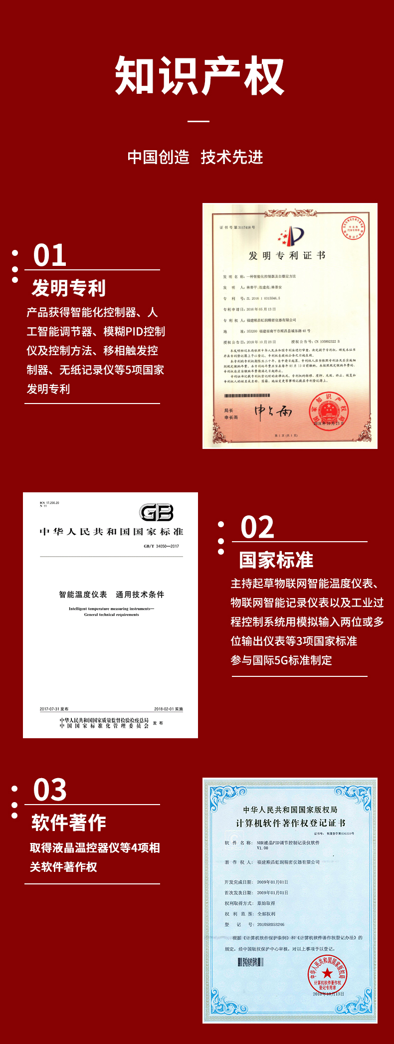 虹潤公司是專業(yè)生產(chǎn)溫控器的國家專精特新“小巨人”企業(yè)。生產(chǎn)的導(dǎo)軌多路溫控器,具有4路或8路PID控制,真正人工智能算式,無需人工整定參數(shù),控制精度達(dá)士0.1°C,數(shù)據(jù)記錄與轉(zhuǎn)存等特點(diǎn)。產(chǎn)品獲得智能化控制器、人工智能調(diào)節(jié)器及調(diào)節(jié)方法、模糊PID控制儀及控制方法、一種平板無紙記錄儀、巡回檢測顯示方法及裝置等5項國家發(fā)明專利,主持起草物聯(lián)網(wǎng)智能記錄儀表、物聯(lián)網(wǎng)智能溫度儀表、工業(yè)過程測量和控制系統(tǒng)用智能調(diào)節(jié)器等3項國家標(biāo)準(zhǔn),參與國際5G標(biāo)準(zhǔn)制定,取得液晶溫控器儀表等3項相關(guān)軟件著作權(quán)。產(chǎn)品廣泛應(yīng)用于電石化、工業(yè)爐、試驗(yàn)設(shè)備、注塑機(jī)械、包裝機(jī)械等需要對現(xiàn)場溫度進(jìn)行監(jiān)測控制的行業(yè)。
